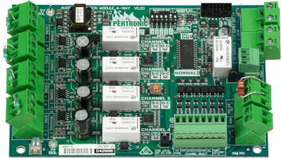 The ADM-4 is compatible with Pertronic evacuation amplifiers and any third-party amplifier that is controlled by a Pertronic Evacuation Generator (EVACGEN-EA).