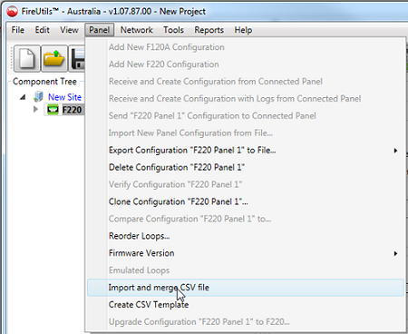 With FireUtils® 3.0 you can import a *.csv file containing a list of detectors and input/output modules, complete with the plain-text descriptor, loop number, loop address, device type and zone number for each device. The list of devices may be exported from a CAD programme or from a spread-sheet such as Microsoft Excel.