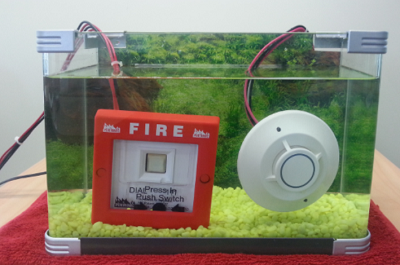 When we developed the Mk2 version of our weatherproof manual call points last year our testing confirmed they easily achieved an IP 65 rating. We knew they were better than that. So we installed a Pertronic weatherproof call point and a System Sensor IP 67 analogue addressable heat detector underwater in a fish tank. Four months later they were still working perfectly. Armed with the results of this not quite scientific test, we believe our weatherproof call points achieve a better rating than IP 65.